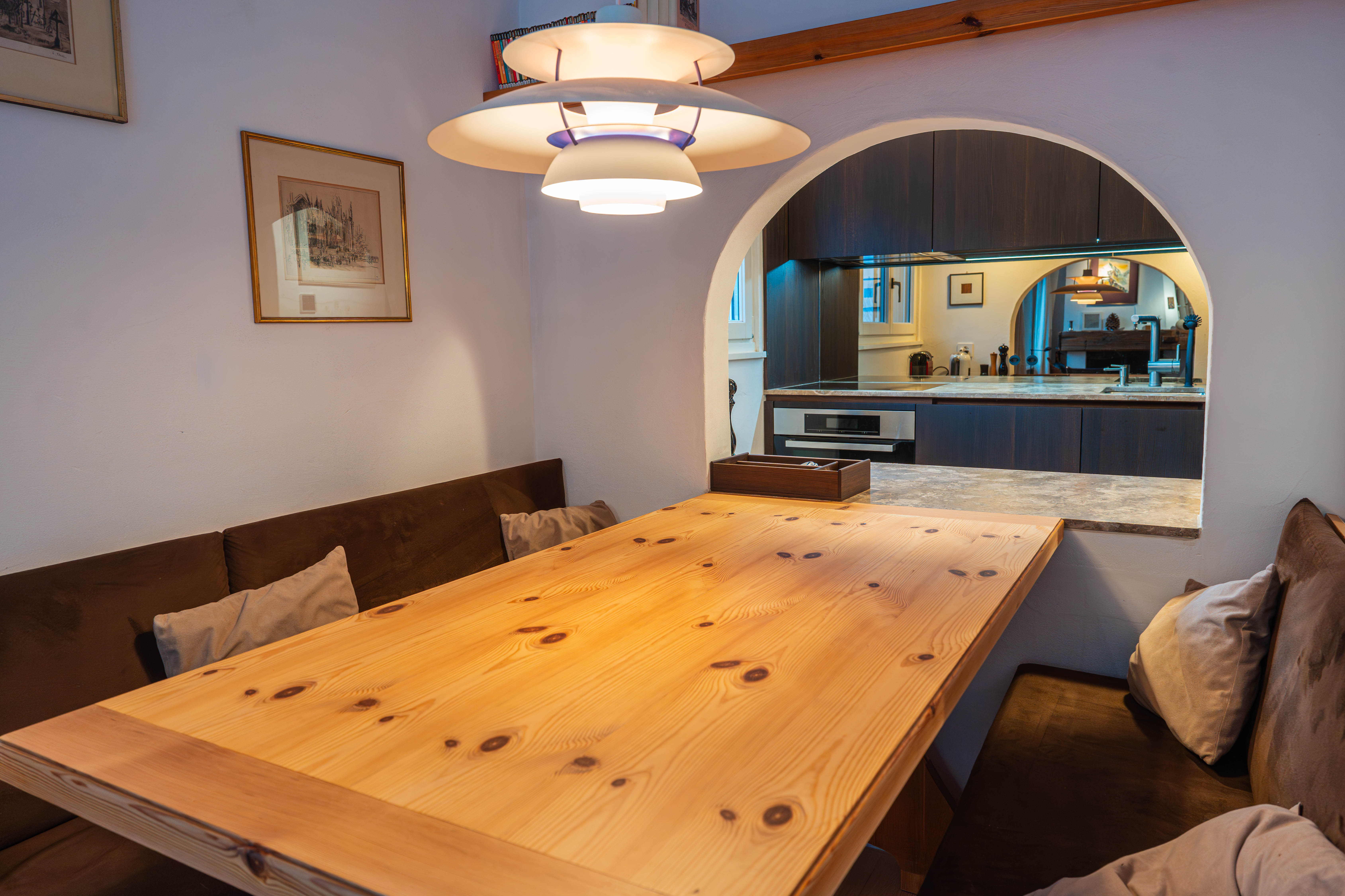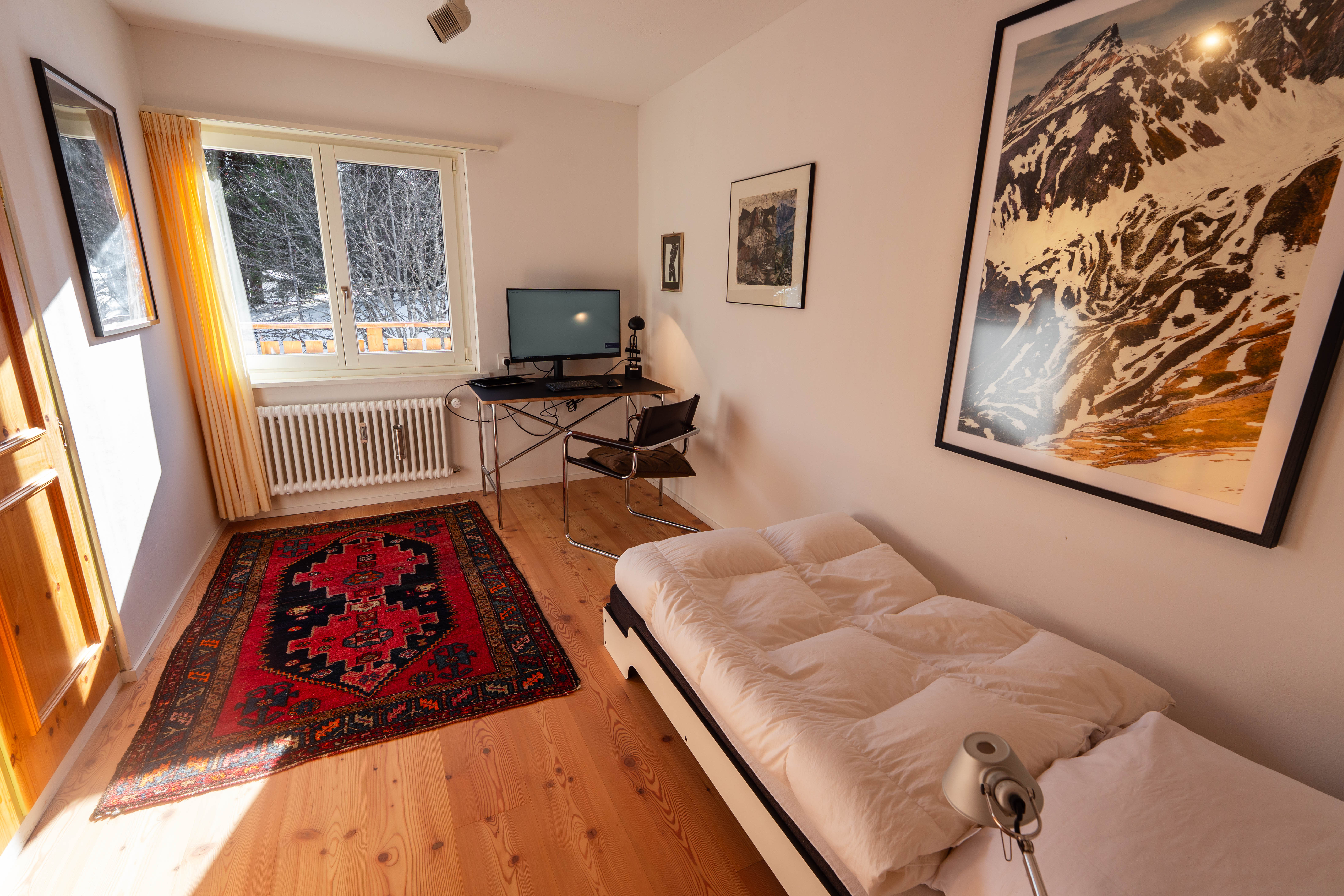 Das Haus Casa Nonna befindet sich am Ende einer Privatstraße ohne Durchgangsverkehr. So können Sie in absoluter Ruhe die Berge genießen. Gelegentlich streifen Rehe oder Hasen von den umliegenden Wiesen durch den Garten. Vom offenen Kamin aus erblicken Sie das Lenzerhorn und können beobachten wie sich der Gipfel in den letzten Sonnenstrahlen in ein fatastisches Alpenglühen verwandelt.